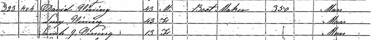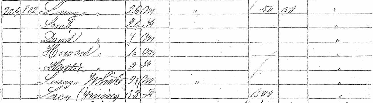| Lucy [Eldredge or Eldridge?] (White) Vining | ? | 43 | 53 [see note below] | 60 [see note below] | dead |