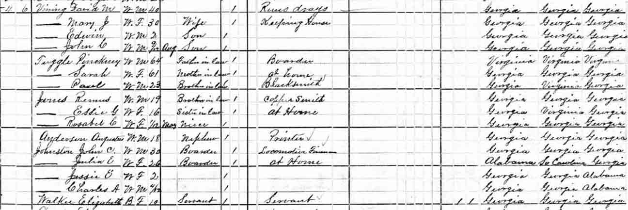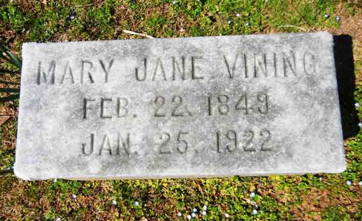 | Mary Jane (Tuggle) Vining | 30 | ? | 52 | ? | ? | dead |
