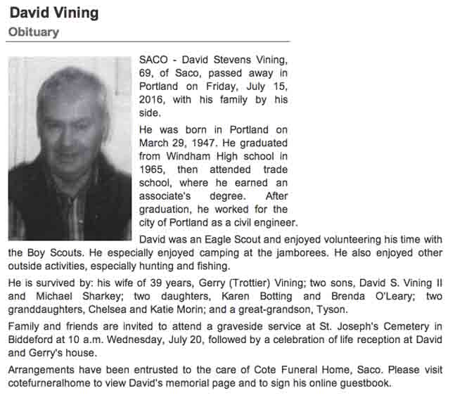 Documentation for David Stevens Vining - (1) Germain Sharkey; (2) Gerry Trottier