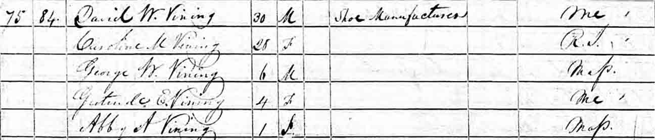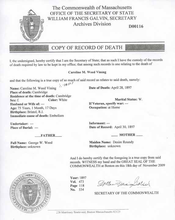 | Caroline M. (Weed) Vining | 28 | 38 [see note below] | 47 | ? | ? | dead |