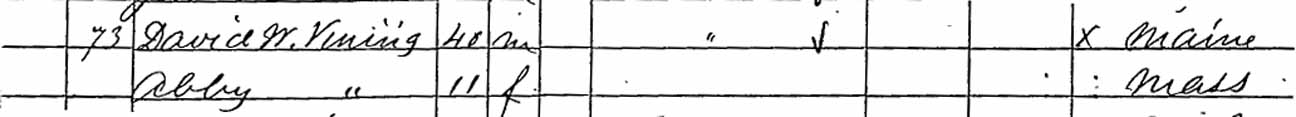 | Abbie A. Vining | 1 | 11 [see note below] | ? | ? | ? | ? |