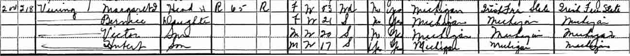 | Bernice Marjorie Vining | 1 y., [?] m. | 11 | [living? in separate household] | |
