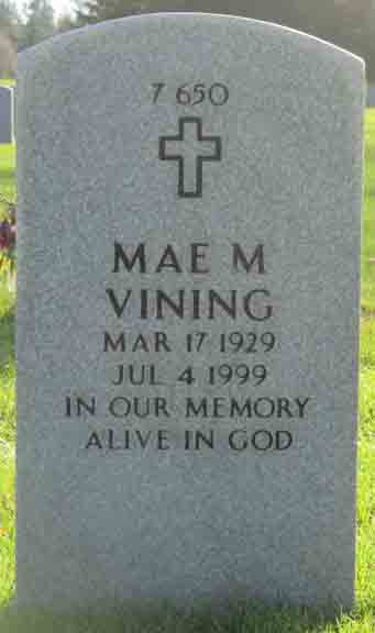Gravestones for DeWitt Allen Vining and Mae M. (Murray) Vining, in Tahoma National Cemetery, Kent, King County, Washington (from Find A Grave):