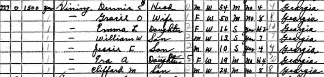 | Grace O. (Welborn) Vining | 30 [sic] | 30 | 39 | 50 |