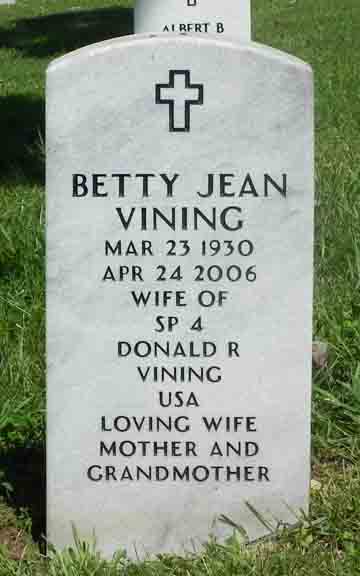 Gravestone for Betty Jean ([…]) Vining, in Tennessee State Veterans Cemetery, Knoxville, Knox County, Tennessee (from Find A Grave):