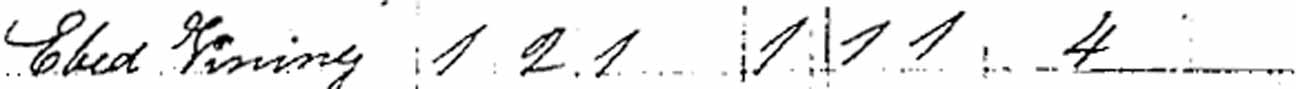 | Ebed Vining Jr. | M under 16 | M 10–16 | M 16–26 | married and living in separate household | ||