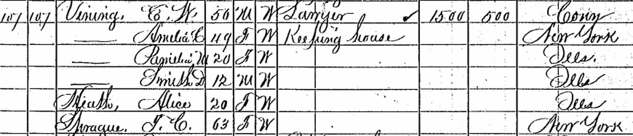 | Laura Ann Vining | 6 | 16 | [living? in separate household] | | | |