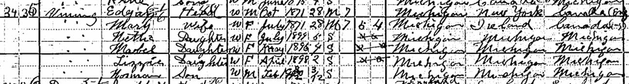 | Mabel Vining | 4 | 13 | [living? in separate household] | ||