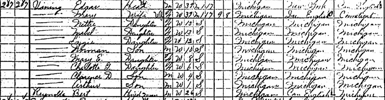| Nettie Vining | 5 | 15 | [living? in separate household] | ||