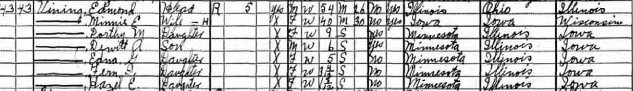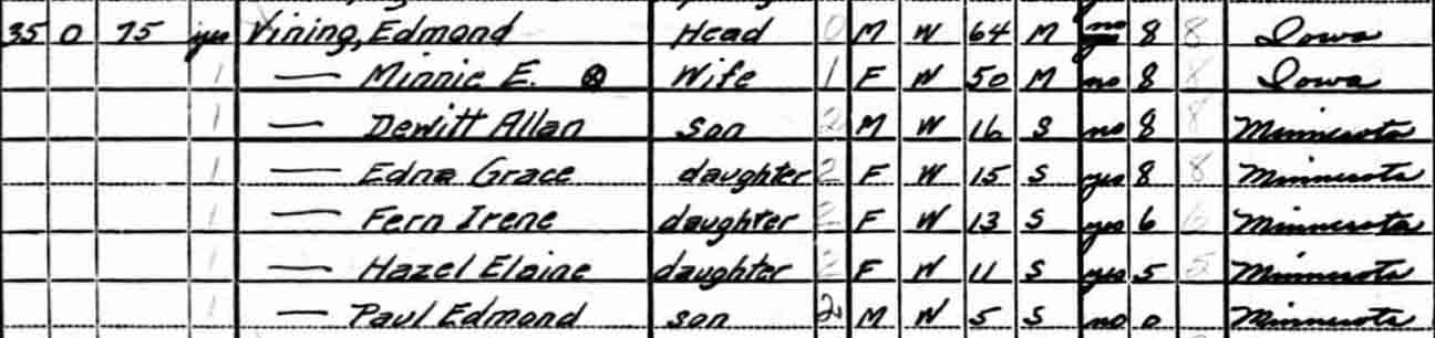 | Leroy T. C. Vining | 7 | 16 | married and living in separate household | |