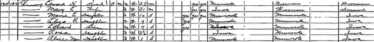 | Mary Ella Vining | ? | 10 | married [and living in separate household?] | |