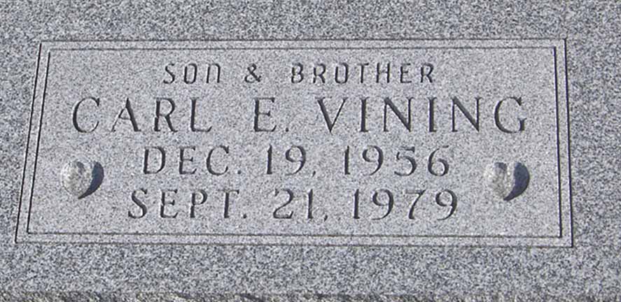 Gravestone for Carl E. Vining, son of Edward J. Vining and Nettie Charlene (Bridges) Vining, in Greenlawn Union Cemetery, Perrysville, Ashland County, Ohio (from Find A Grave):