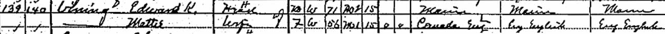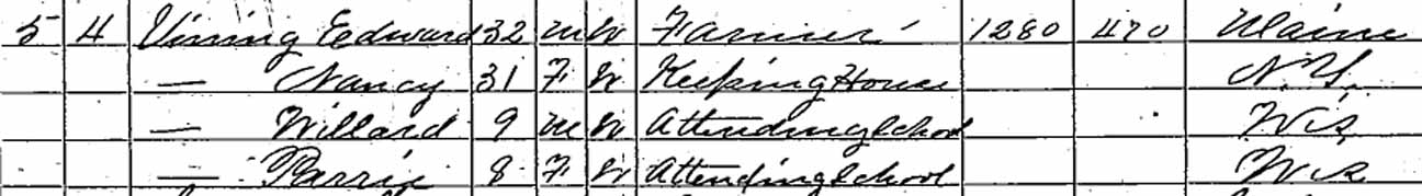 | Willard Vining | 9 | 20 | married [and living in separate household?] | ||||