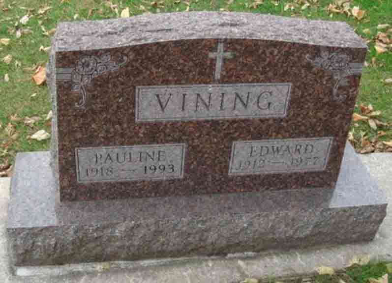 Headstone for Edward Penfield Vining and Pauline Doris (Chinnery) Vining, in Riverside Cemetery, Charles City, Floyd County, Iowa (from Find A Grave):
