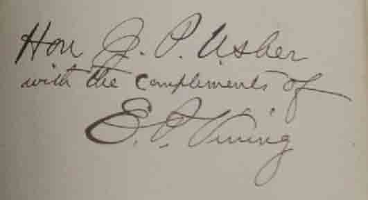 Photographs of Edward Payson Vining, author of An Inglorious Columbus (book cover shown below with an autograph from one of the copies):