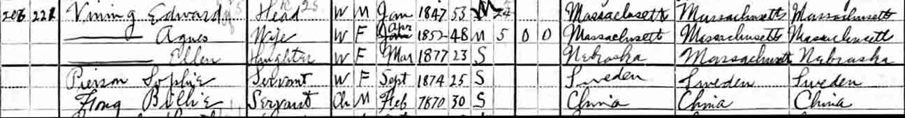 | Annabel Bodwell Vining | 3 | ? | living in separate household | | | | |