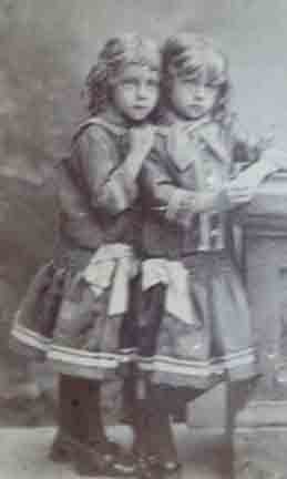 Photograph of twins Ellen Pauline Vining (left) and Annabel Bodwell Vining (right):