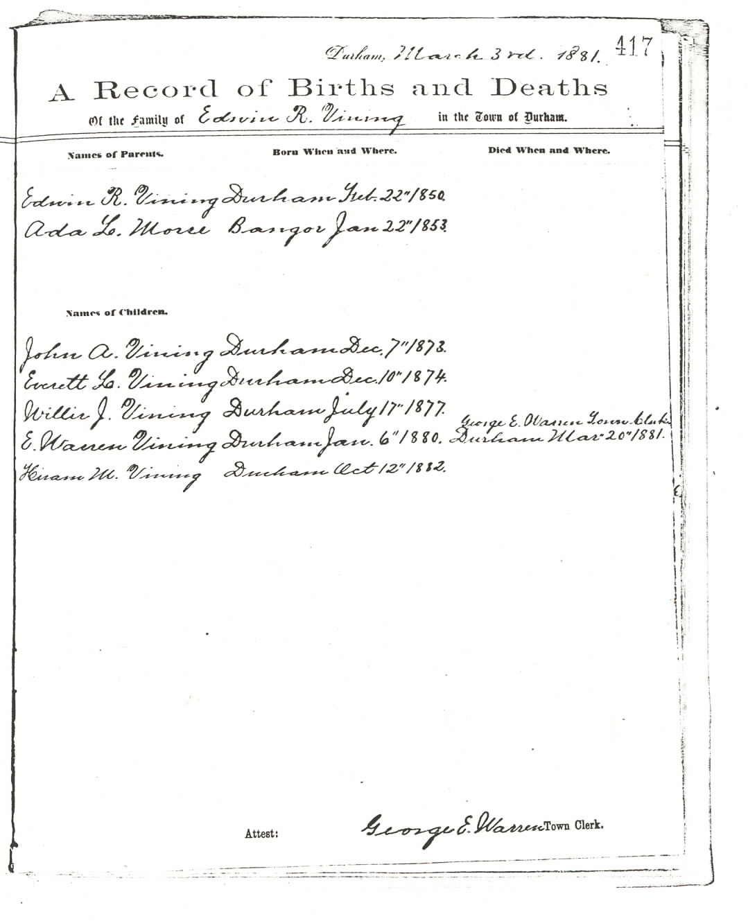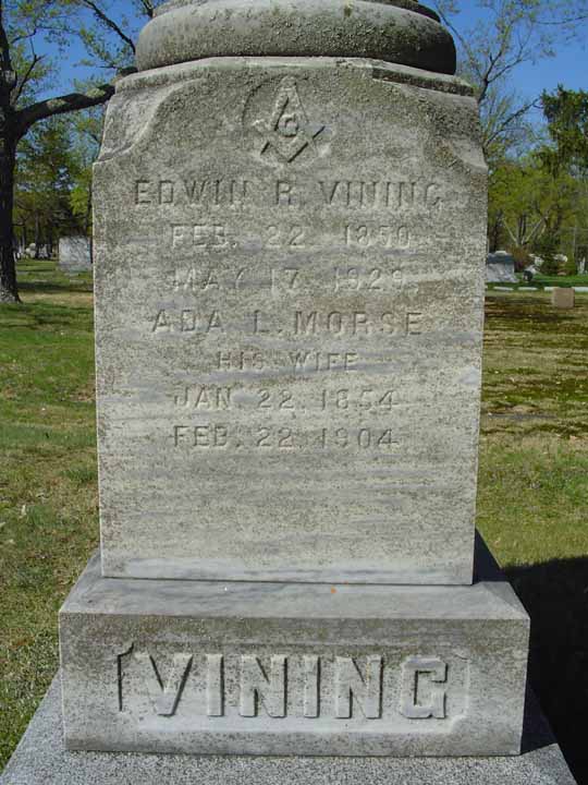 ← Back to Edwin R. Vining - (1) Ada L. Morse, (2) Mrs. Flora Hutchinson