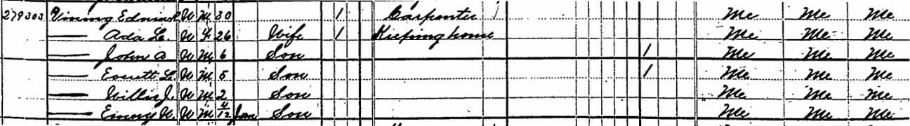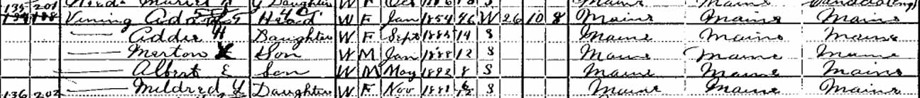 | Merton L. Vining | ? | 12 | ? | married and living in separate household | ? | |