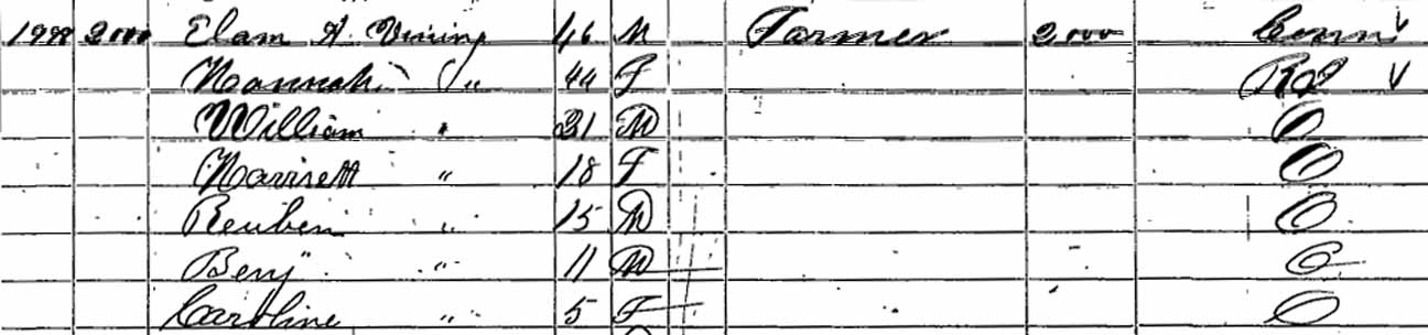 | Reuben D. Vining | ? | 15 | married and living in separate household | ||