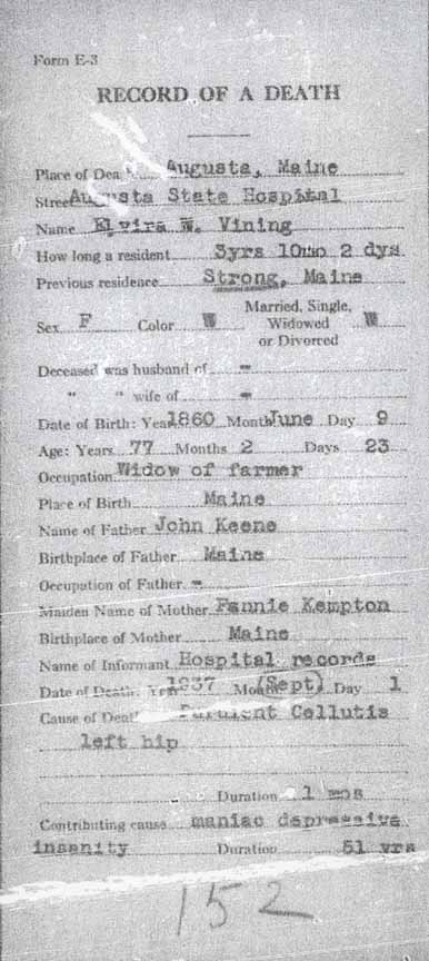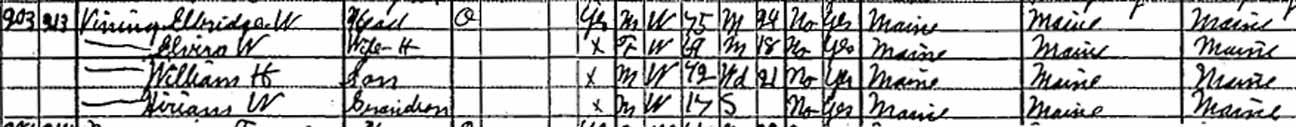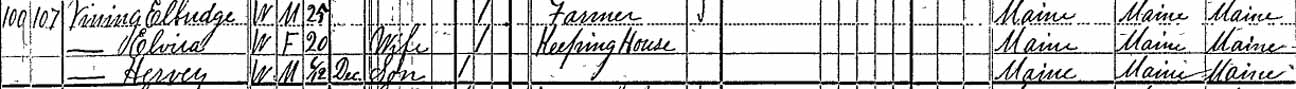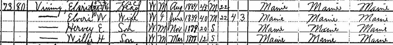 | Elvira W. (Keene) Vining | 20 | ? | 40 | 41 | 59 | 69 | ? |