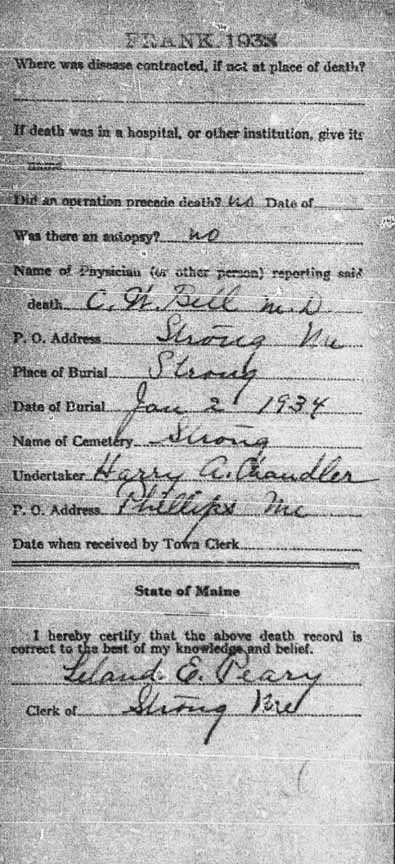 1930 Strong, Franklin County, Maine - dwelling 203, family 213. Also living in this household in 1930 was Hiram W. Vining (17 y., b. Maine), son of William H. Vining.: