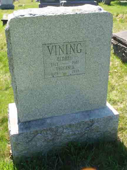 Headstone for Eldred C. Vining and Virginia F. (Cook) Vining, in Clovesville Cemetery, Delaware County, New York (from Find A Grave):