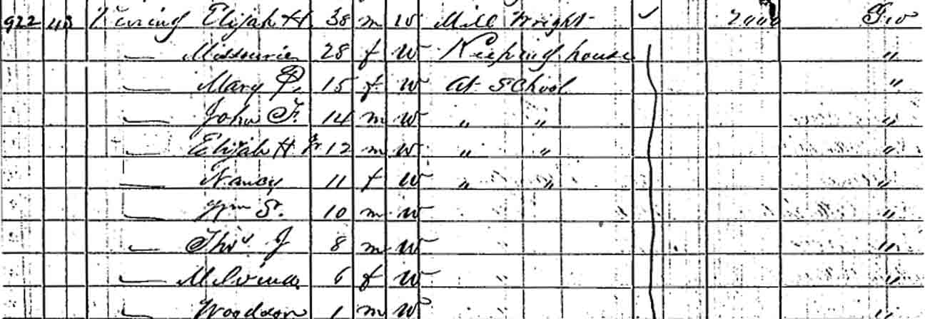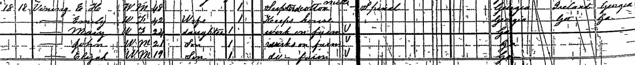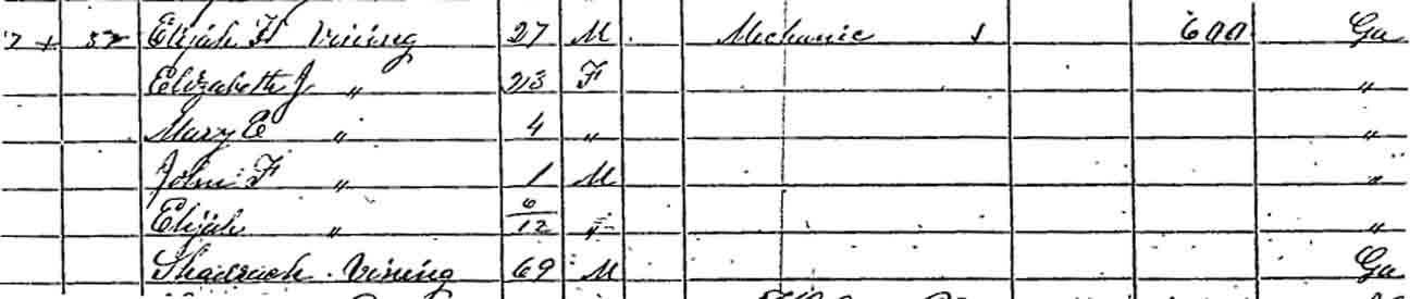 | Elijah H. Vining Jr. | 6 m. | 12 | [19 or 21] [see note below] | ? | [married and living in separate household] | |