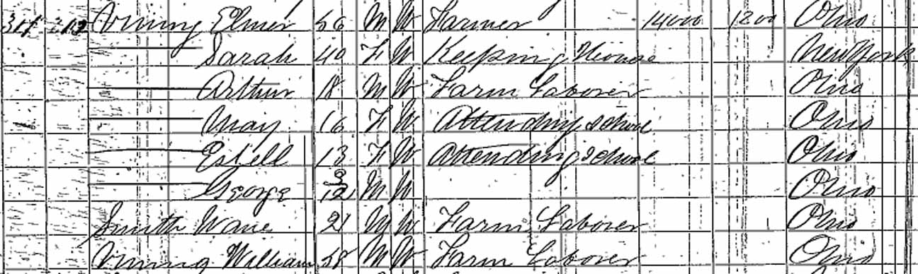 1870 Sharon Township, Franklin County, Ohio - dwelling 311, family 313. Also living in this household in 1870 were farm laborers Wane [sic] Smith (21 y., b. Ohio) and William Vining (58, b. OH, Elmer's brother):