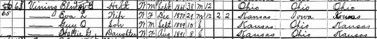 | Guy E. Vining | ? | 10 | 20 | married and living in separate household | ||