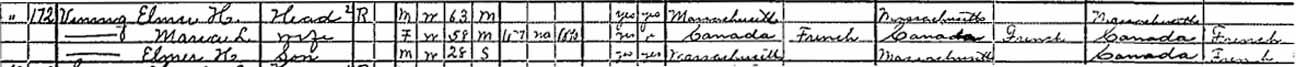 | Elmer Harold Vining | 8 | [illegible] | 28 | married (and living in separate household?) | |