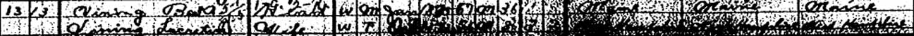 1900 West Lincoln Township, Mitchell County, Iowa - dwelling 13, family 13. Elmo William Vining and family (wife Lucretia and son Glenn) were living in same household as his parents Bela Vining and Lucretia A. (Lyman) Vining.: