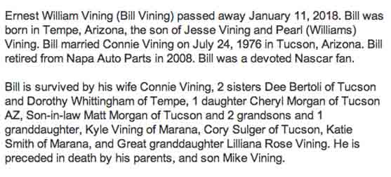 Obituary for Ernest William Vining (from Desert Rose Heather Cremation and Burial website):