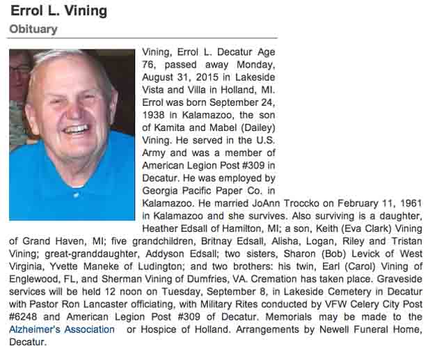 Obituary for Errol Lynn Vining: