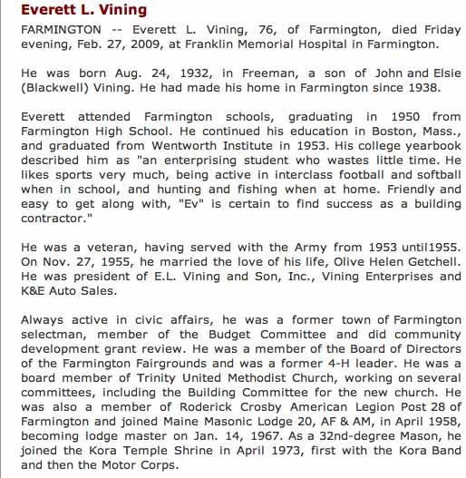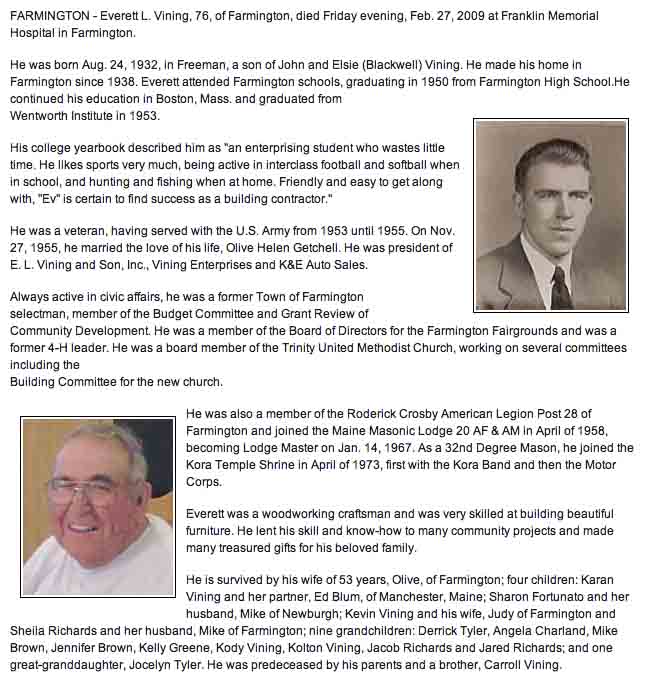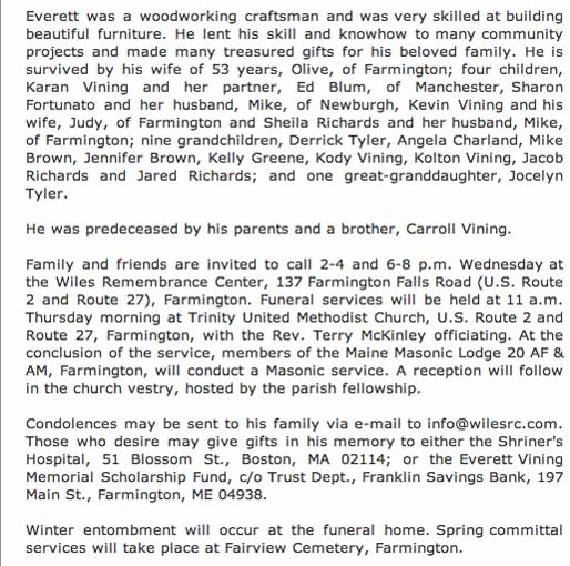 Obituaries for Everett Leon Vining from The Kennebec Journal: