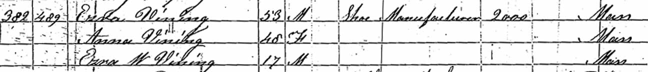| Ezra W. Vining | ? | ? | 17 | married and living in separate household |