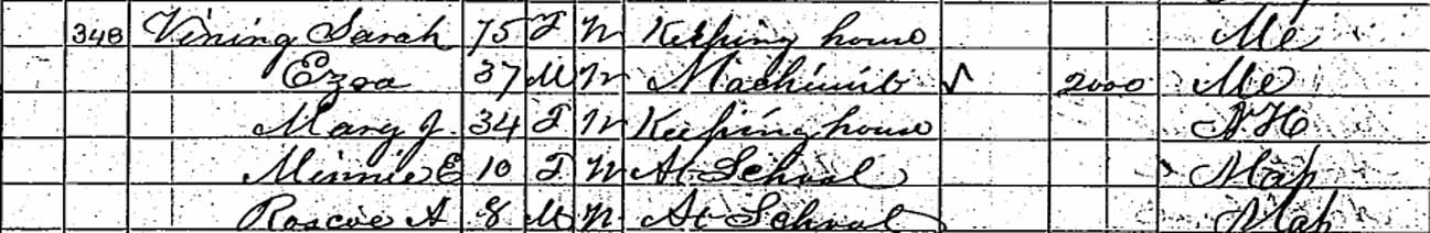 | Mary Jane (Wells) Vining | ? | 34 | 44 | ? | [65?] | dead |