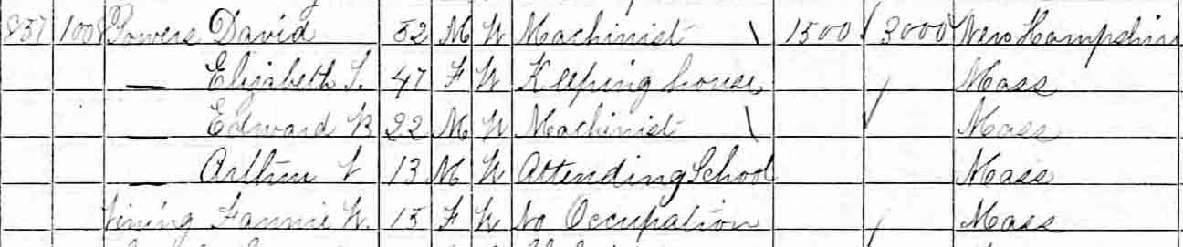 | Fannie Webster Vining | 5 | 15 [see note below] | married and living in household of inlaws |