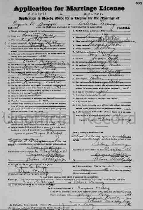 Marriage license application for Arlene Vining and Eugene D. Briggs: