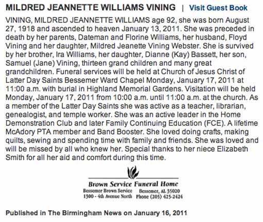 ← Back to Floyd Vining - Mildred Jeannette Williams