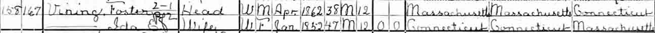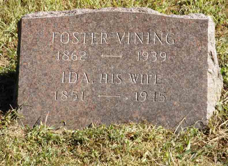 Headstone for Foster Vining and Ida Eliza (Allen) Vining, in Southwick Cemetery, Southwick, Hampden County, Massachusetts (from Find A Grave):