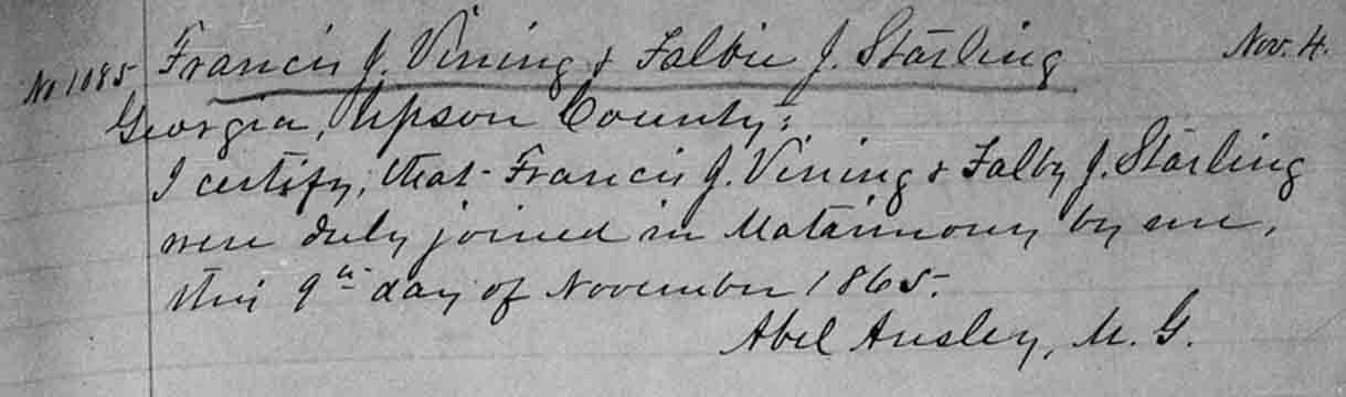 ← Back to Francis Jefferson Vining - Falba J. Starling