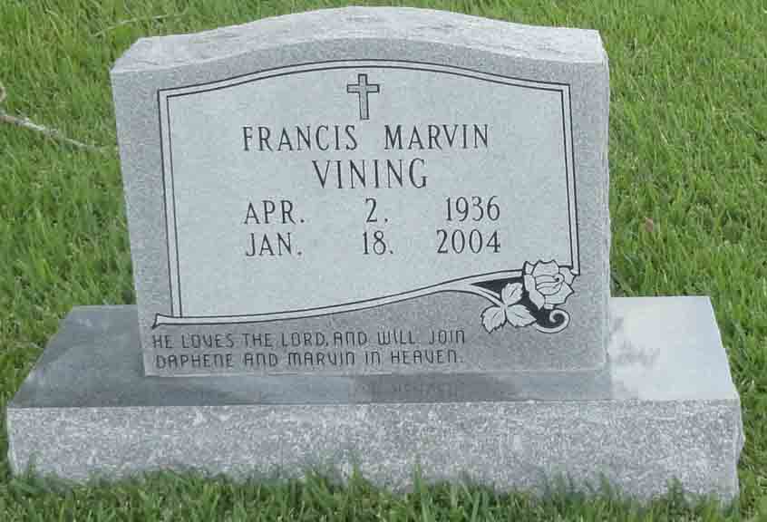 Gravestones for Francis Marvin Vining (from Find A Grave):