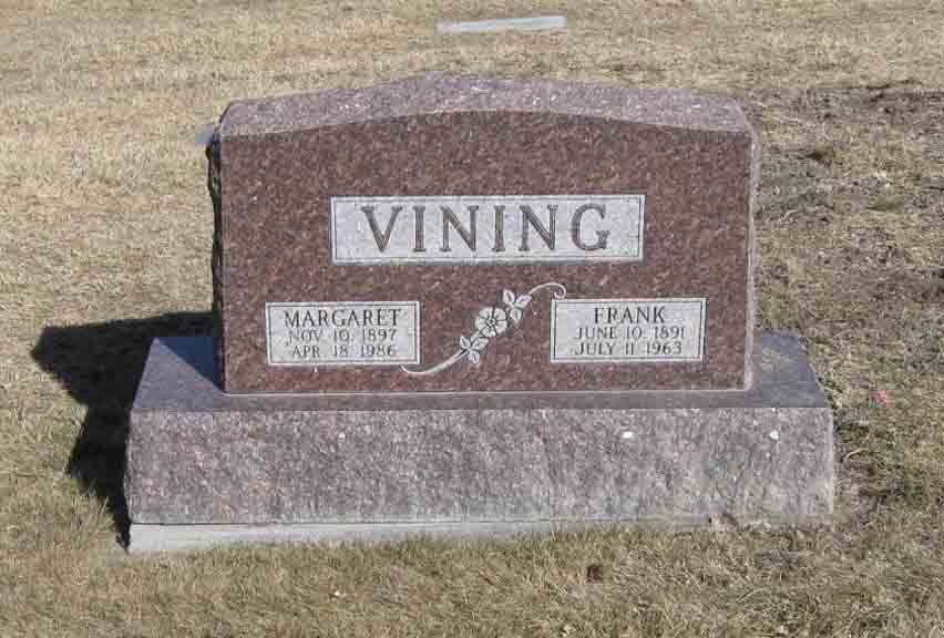 Headstone for Frank Lathan Vining and Margaret (Todd) Vining, in Highland Cemetery, Great Falls, Cascade County, Montana (from Find A Grave):