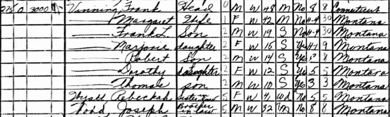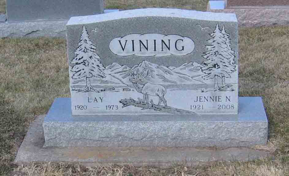Headstone for Frank Lathan Vining Jr. and Jennie N. ([…]) Vining, son and daughter-in-law of Frank Lathan Vining and Margaret (Todd) Vining, in Highland Cemetery, Great Falls, Cascade County, Montana (from Find A Grave):