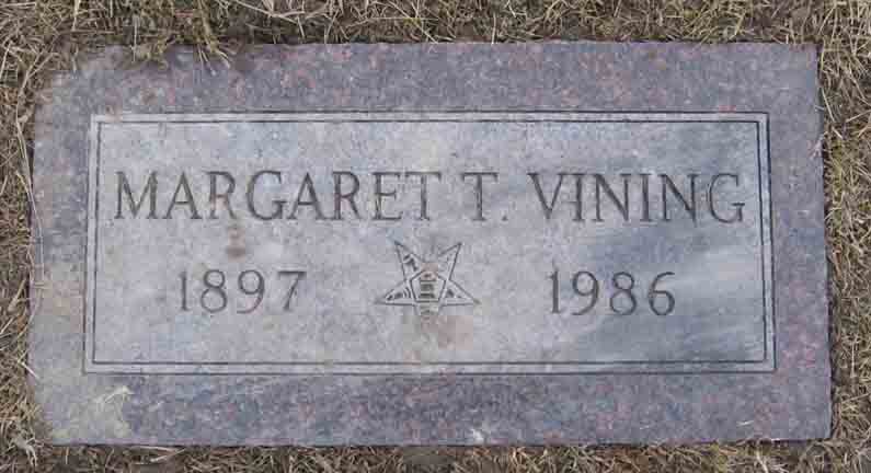 Gravestone for Margaret (Todd) Vining, in Highland Cemetery, Great Falls, Cascade County, Montana (from Find A Grave):
