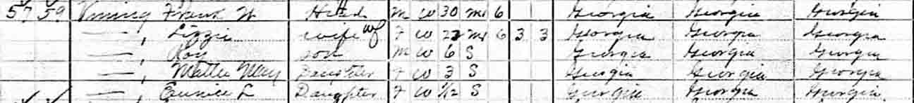 | Mattie Mae Vining | 3 | 12 | married and living in separate household | |