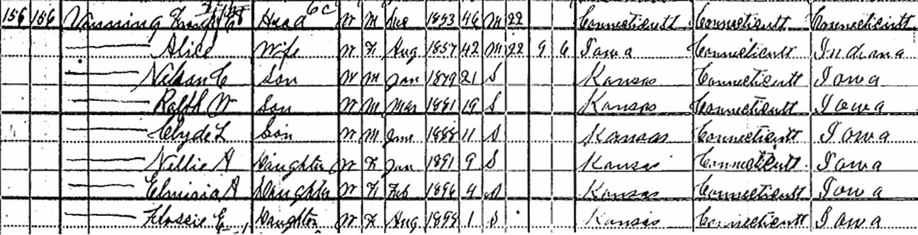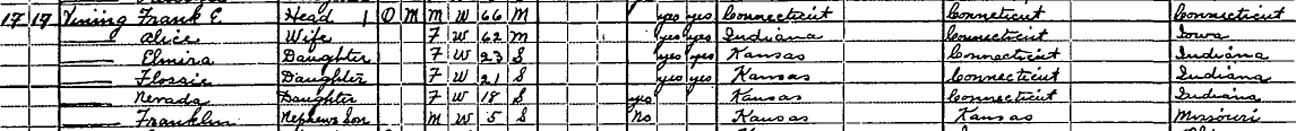 | Nellie A. Vining | 9 | 18 [see note below] | [living? in separate household] | ||||