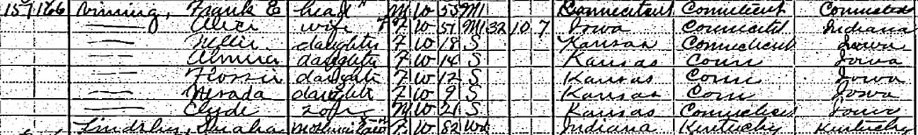| Alice Flossie (Lindsley) Vining | 22 | ? | 42 | 51 | 62 | ? | dead |