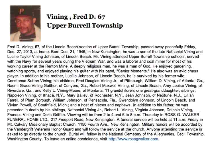 Obituary for Fred Douglas Vining: